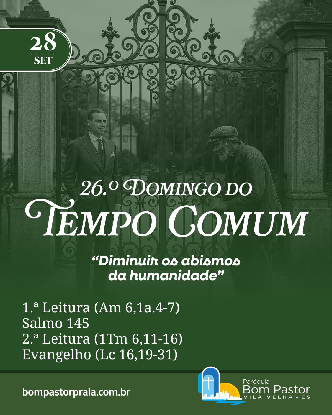 Neste 26º domingo do Tempo Comum, o Evangelho nos apresenta a parábola de Lázaro e do homem rico. Jesus desafia os fariseus a construir