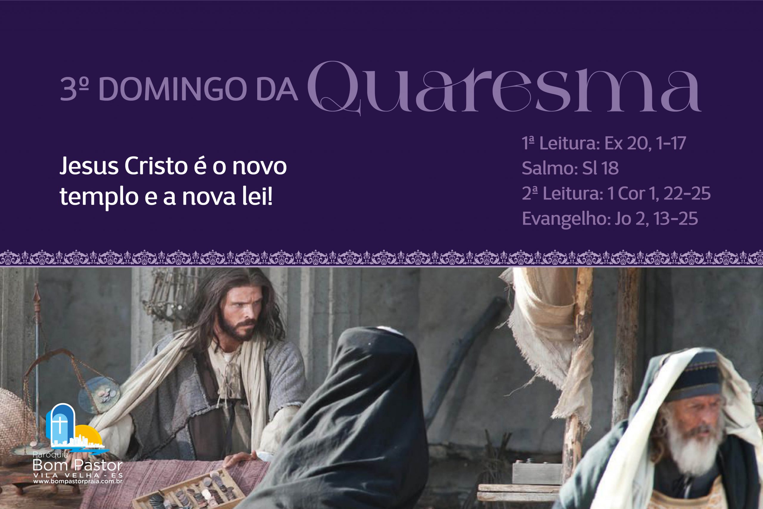 O 3º domingo da Quaresma põe no centro os fundamentos do judaísmo – a Lei e o templo. Com o Evangelho, Jesus inaugurou nova forma de experiência religiosa – a nova Lei é fazer a vontade do Pai e o novo templo é seu corpo ressuscitado. São Paulo, na primeira carta aos Coríntios, traduz a “sabedoria da cruz”; ou seja, aquilo que o mundo considera fraqueza, loucura, é a força e a sabedoria de Deus. Trata-se de sabedoria nova, que lança luzes sobre novo estilo de vida, pessoal e comunitário, a ser assumido por todos os seguidores de Jesus.
