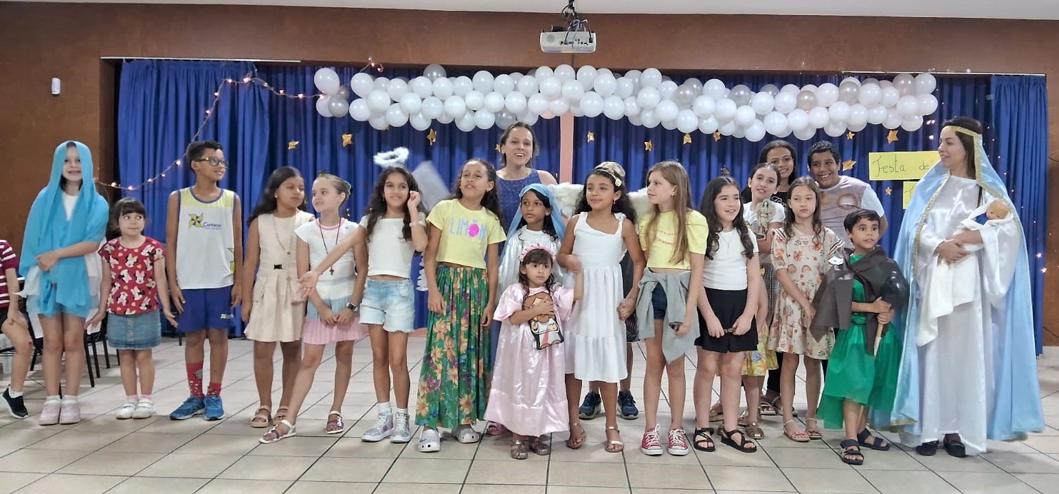 Uma das ações sociais realizadas pelos Vicentinos no Natal Solidário da Paróquia Bom Pastor Praia da Costa é a apresentação musical dos alunos do