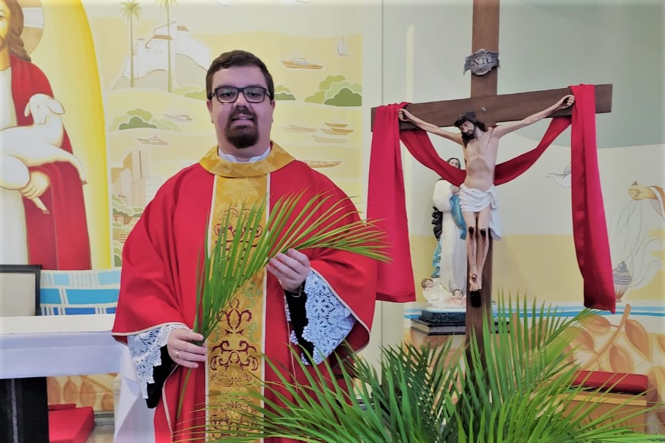 Padre Tárcio Rosa Siqueira ordenado há 8 meses e tendo exercido seus primeiros meses de missão em nossa Paróquia Bom Pastor – Praia da
