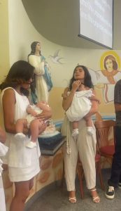 Recebendo as bênçãos do pároco, padre Edemar Endringer, todas as famílias puderam apresentar cada uma das crianças para a Igreja, a Comunidade e para Deus, desejando que elas consigam crescer e evoluir ao longo de suas vidas, sempre seguindo nos caminhos do Senhor.